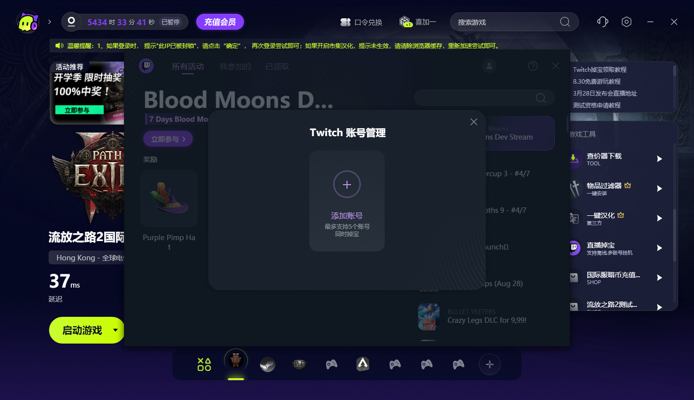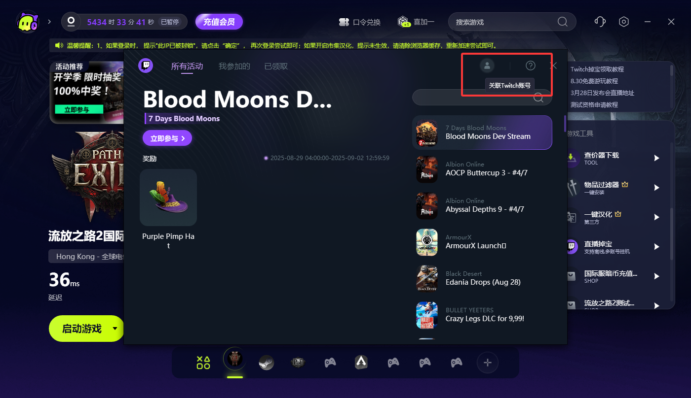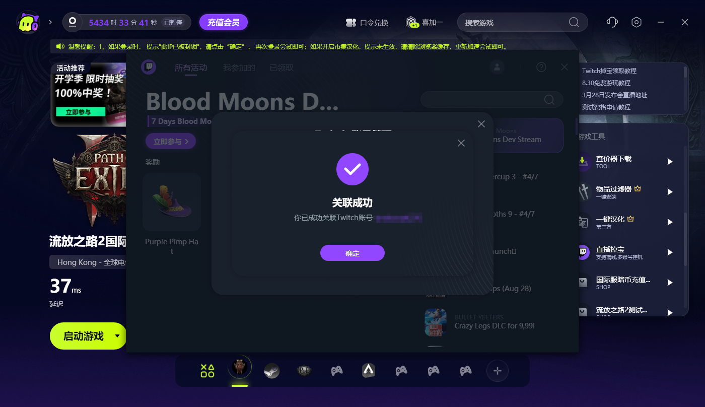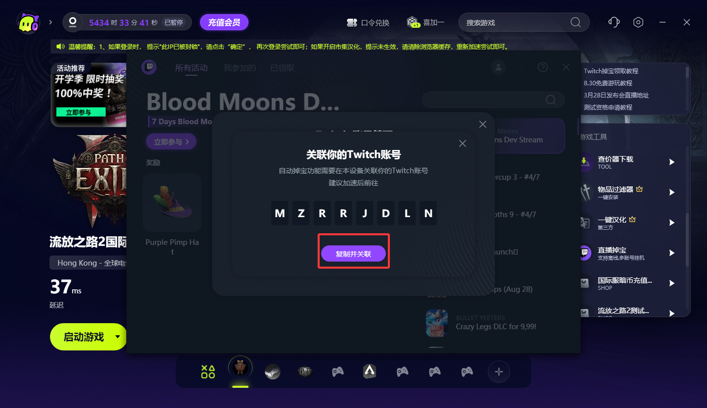 8.掉宝完成后,Twitch账号和流放之路2账号的绑定教程: https://www.ggkuai.com/client/2022/html/treasure-box/101905.html