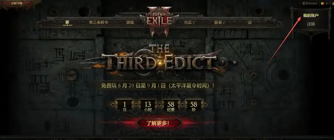 1.打开官网,链接: https://pathofexile2.com/home ,并点击右上角的登录。