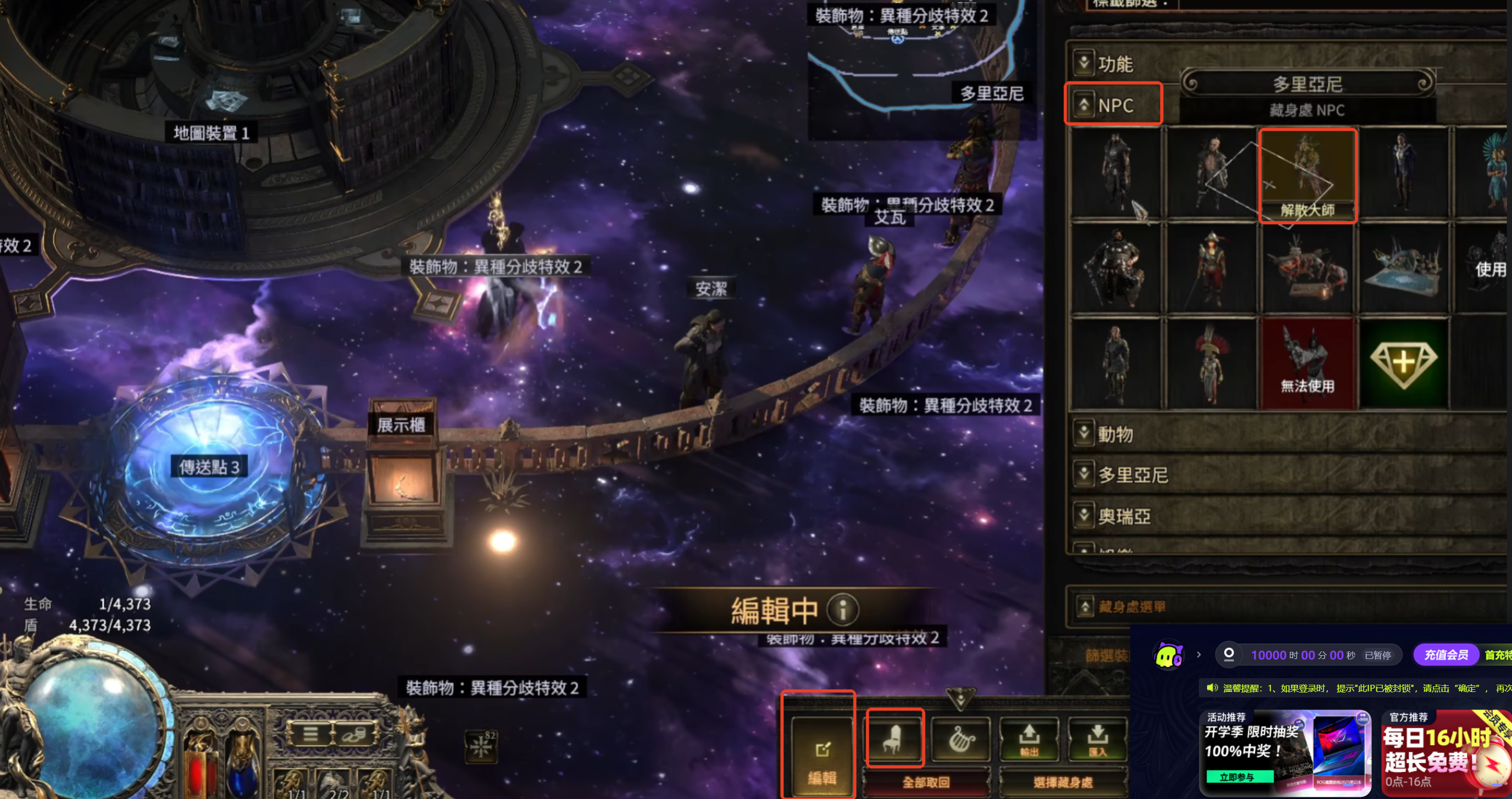 然后打开游戏,进入藏身处依次点击:1.编辑 2.装饰物 3.NPC 4.安洁