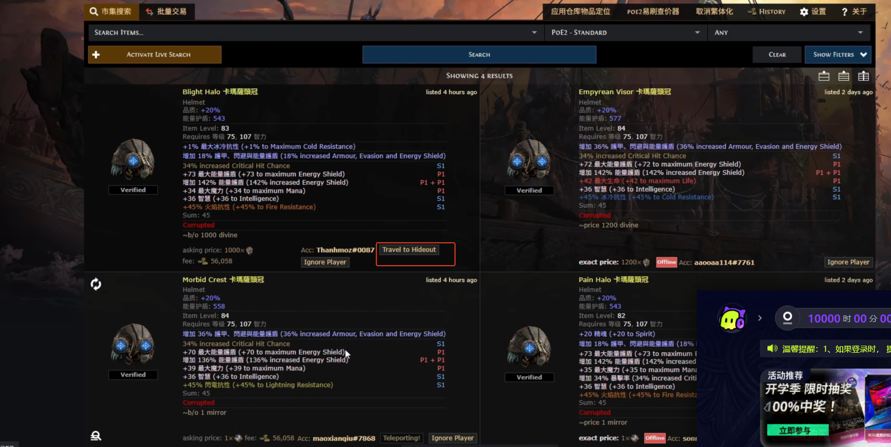 2.在传统网页市集里,直接点击Travel to Hideout也是一样的,直接进入别人的藏身处,直接购买即可