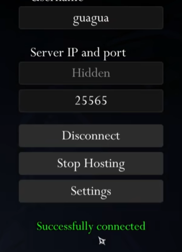 接下来就只需你的小伙伴把名字填好,ip和端口填一样的再点击connect,链接成功的话小伙伴就可以成功来到你的世界了