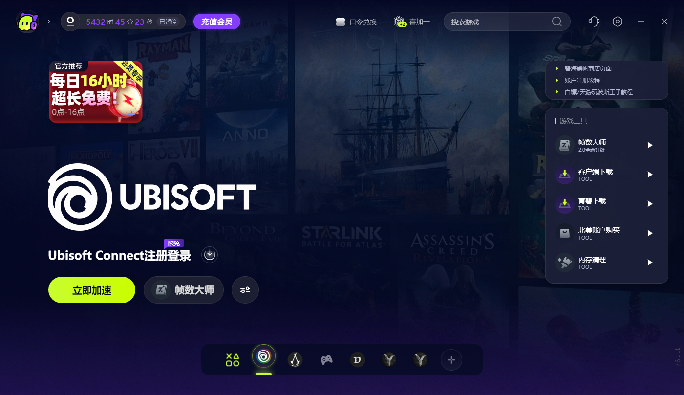 1.在古怪加速器里搜索“育碧”在工具栏里找到”育碧下载”,点击下载