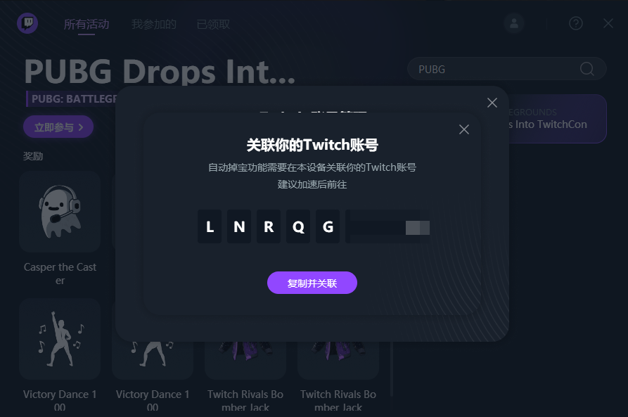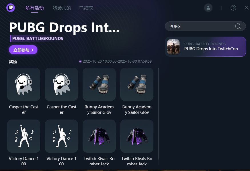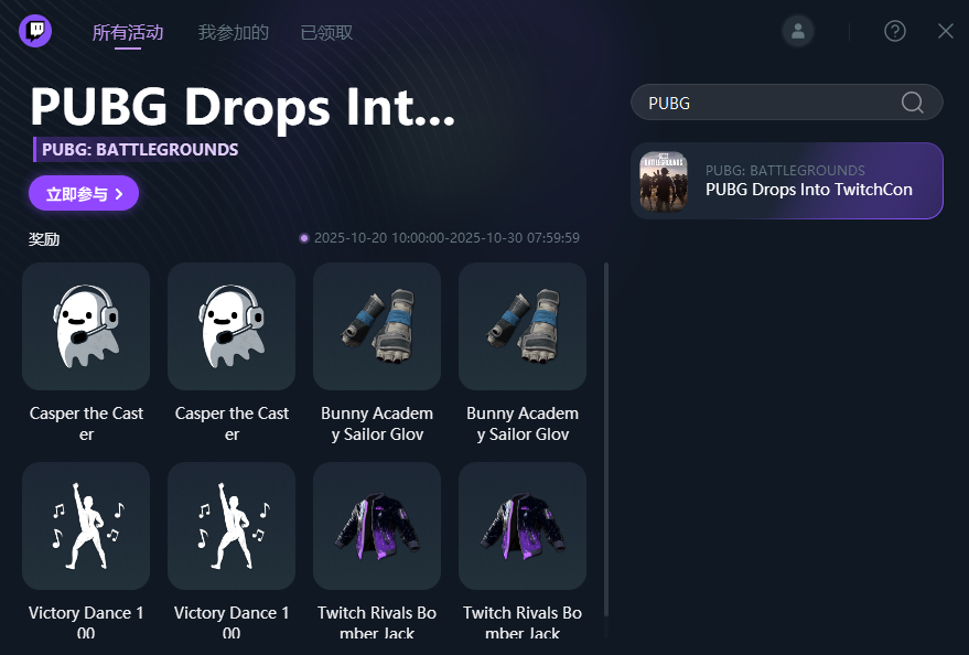 现在只需等到PGS皮肤上线老鼠台掉宝,然后回到直播自动掉宝工具处 点击立即参与即可