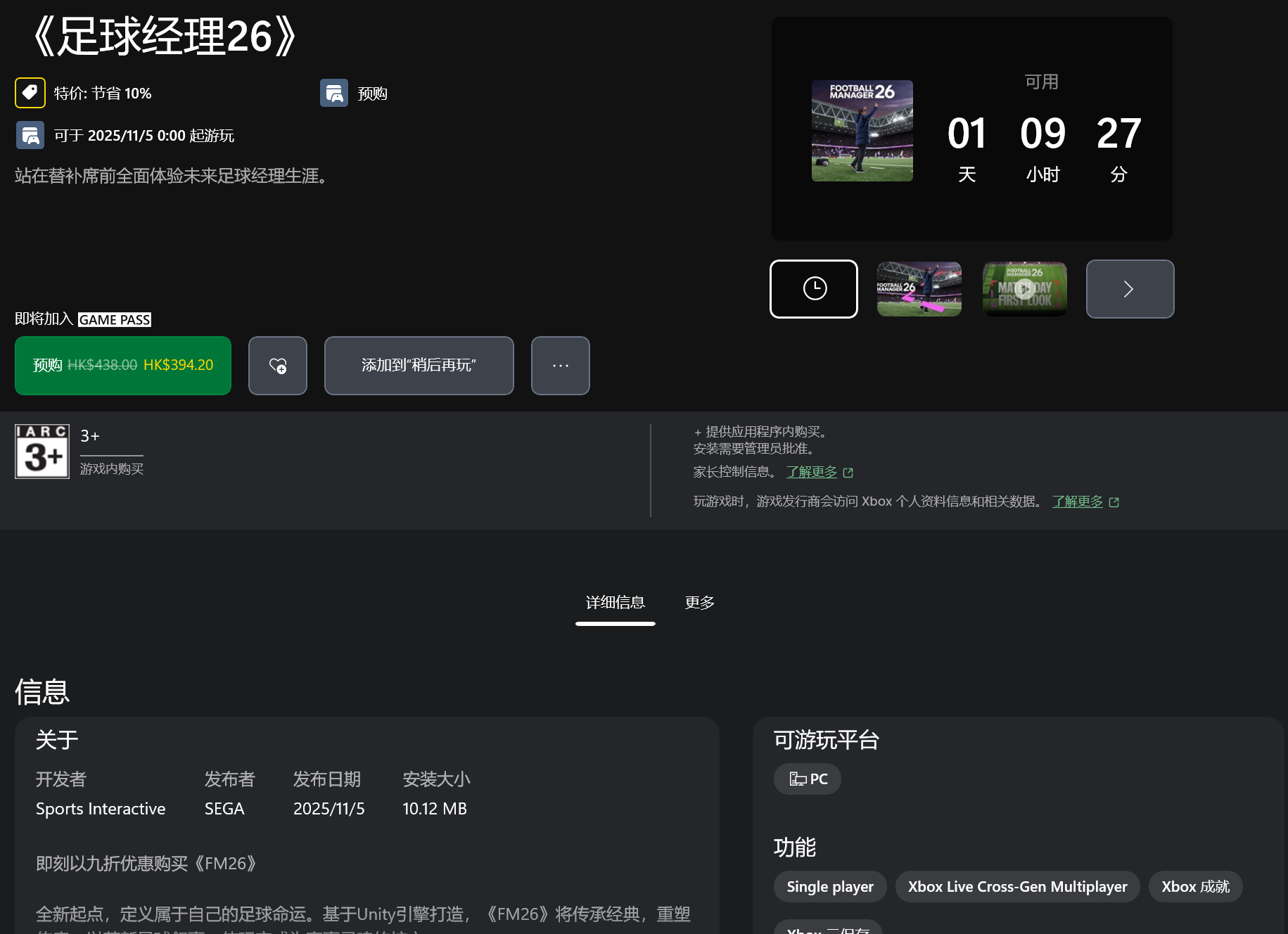 然后等待其加入GAME PASS,加入后即可用XGP会员免费游玩