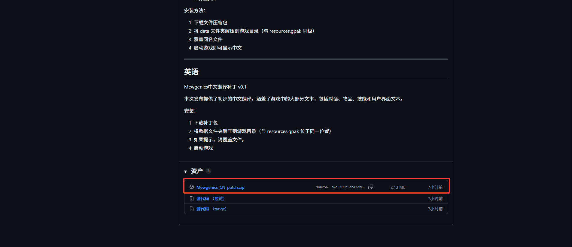 >>>点击此处访问汉化包下载链接。1.来到下载页面后下滑找到红框圈出的文件,点击文件即可下载。2.来到Steam库中,在左侧的游戏列表中找到“喵喵的结合”并右键,点击管理后点击“浏览本地文件”。3.将下载好的文件(通常为Mewgenics_CN_patch.zip)移动/复制到浏览本地文件后弹出的页面中。4.将下载的压缩文件解压缩到此处即可。如有提示,请选择覆盖文件。5.完成后打开游戏即会发现已完成汉化。